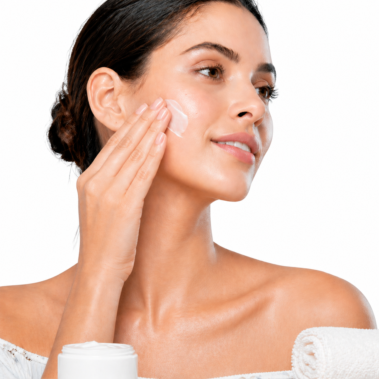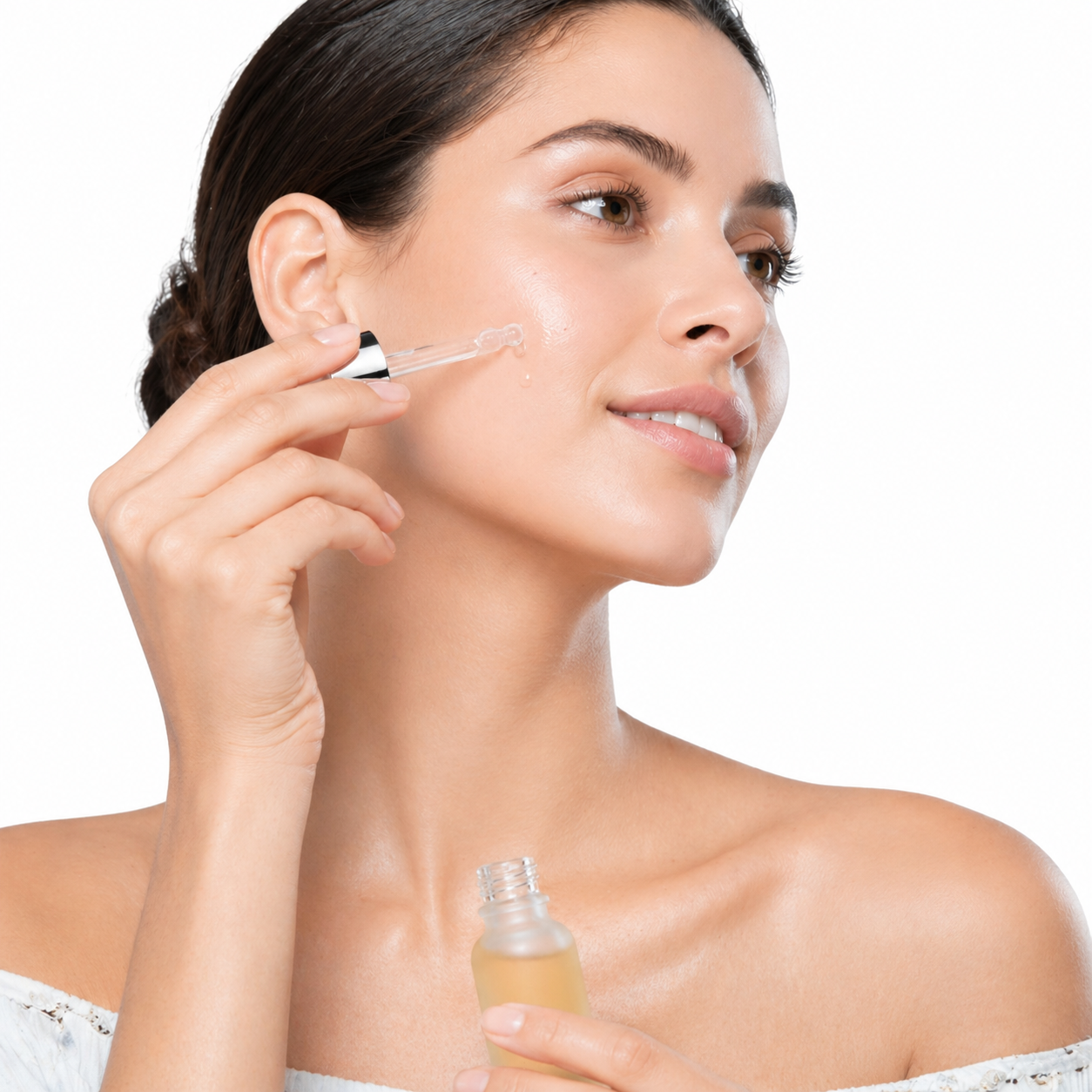 Aplica unas gotas de sérum, aceite facial o crema hidratante sobre la piel limpia para facilitar el deslizamiento del Gua Sha.